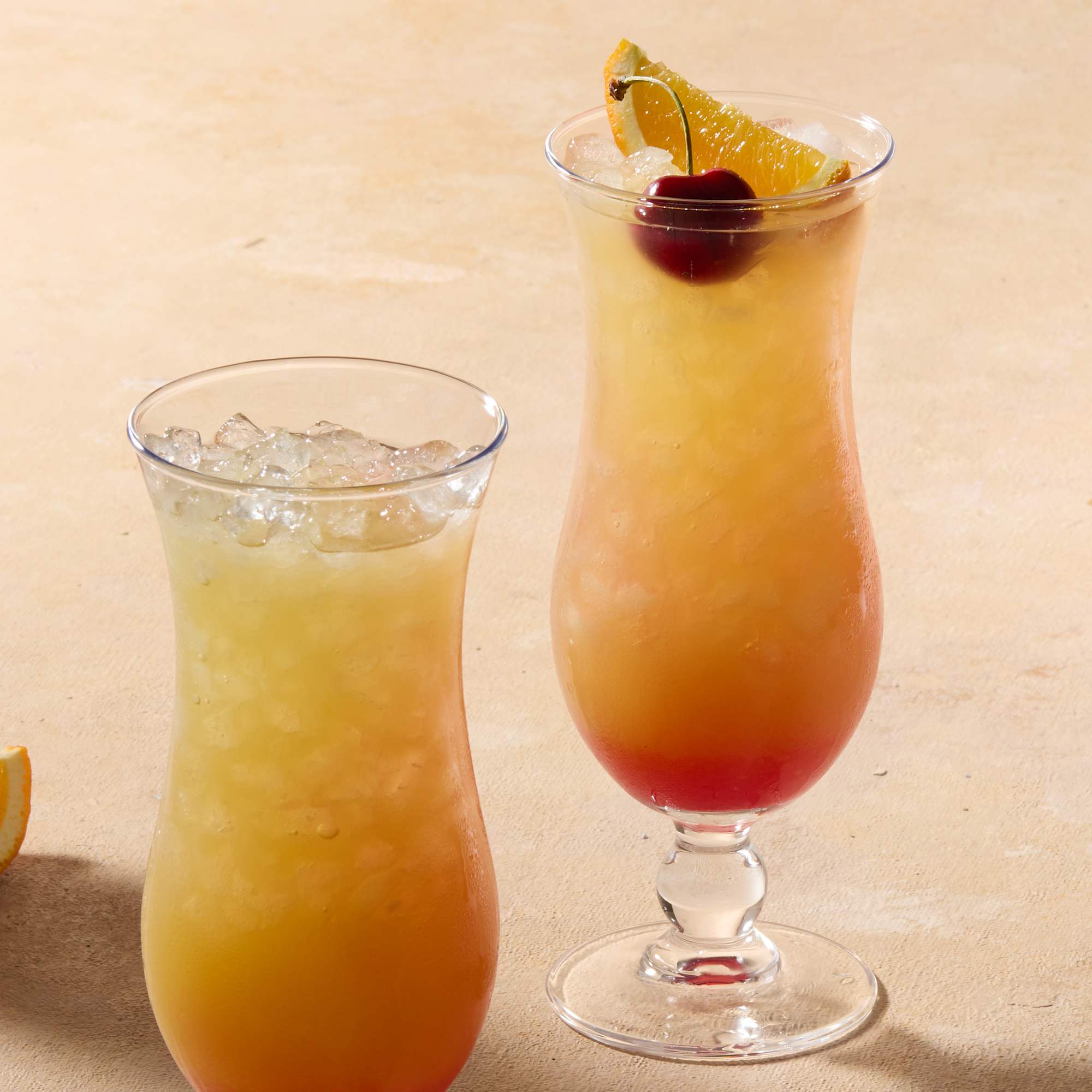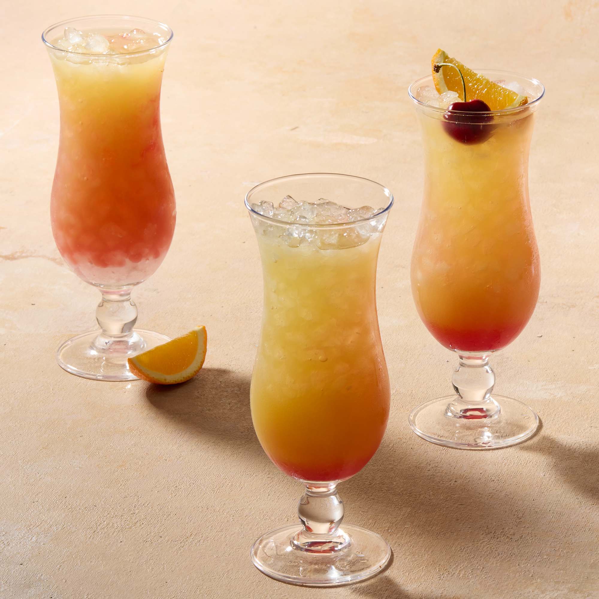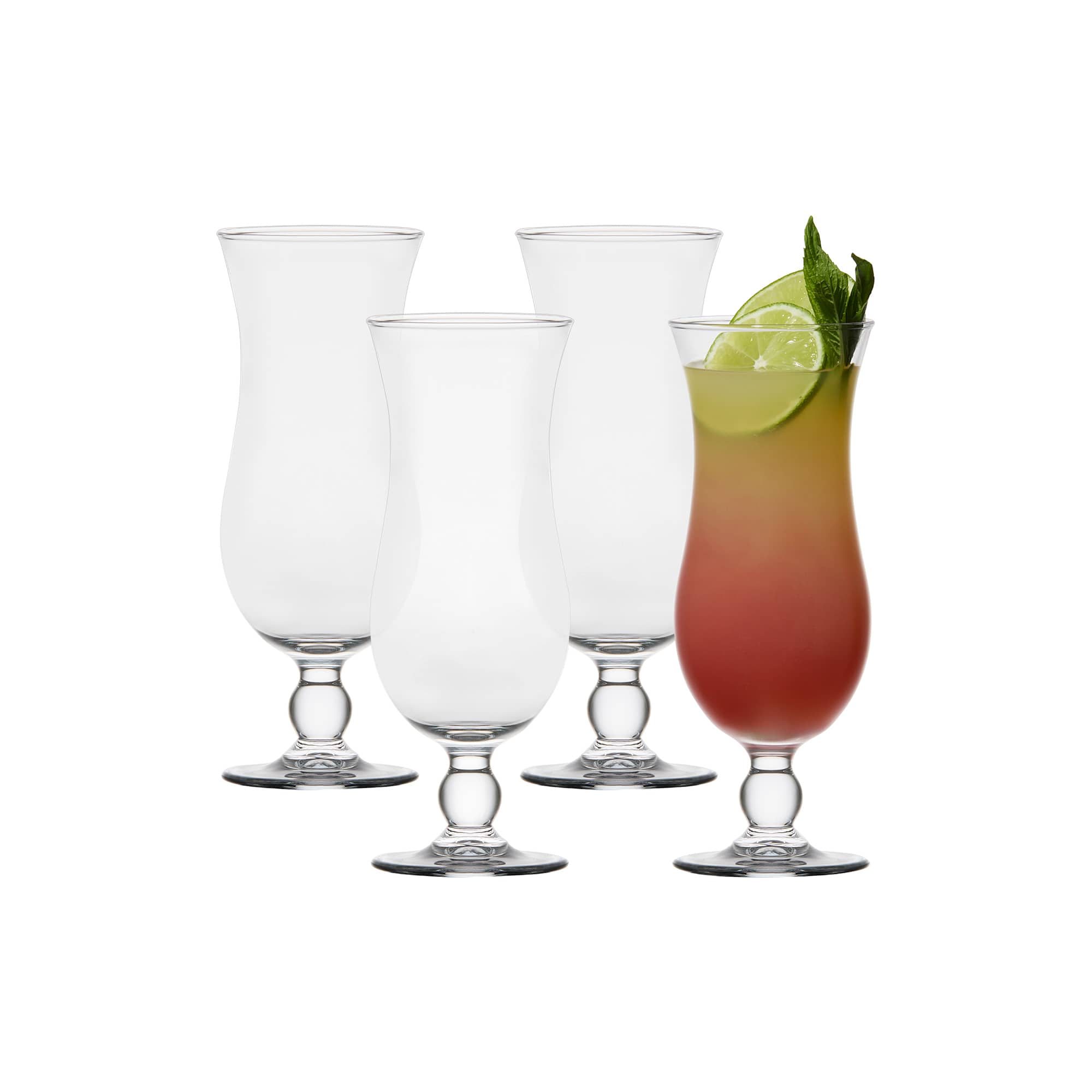 - Set of four hurricane glasses with a classic flared shape