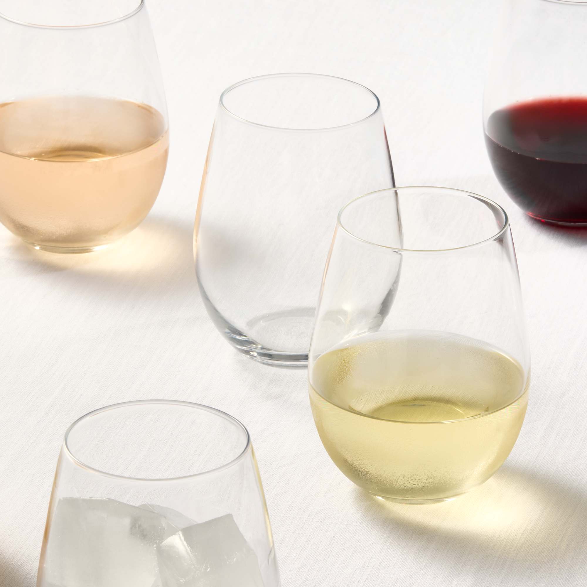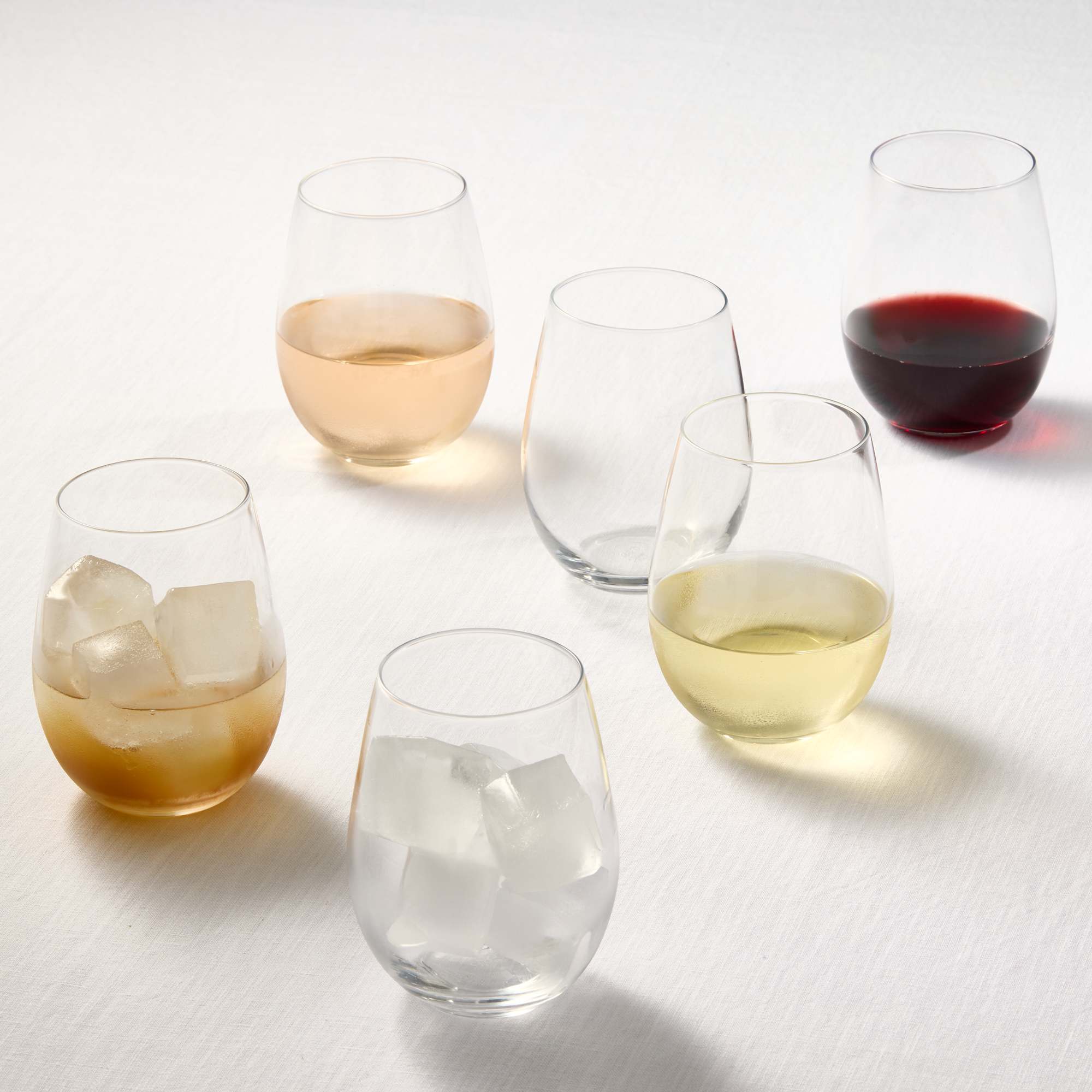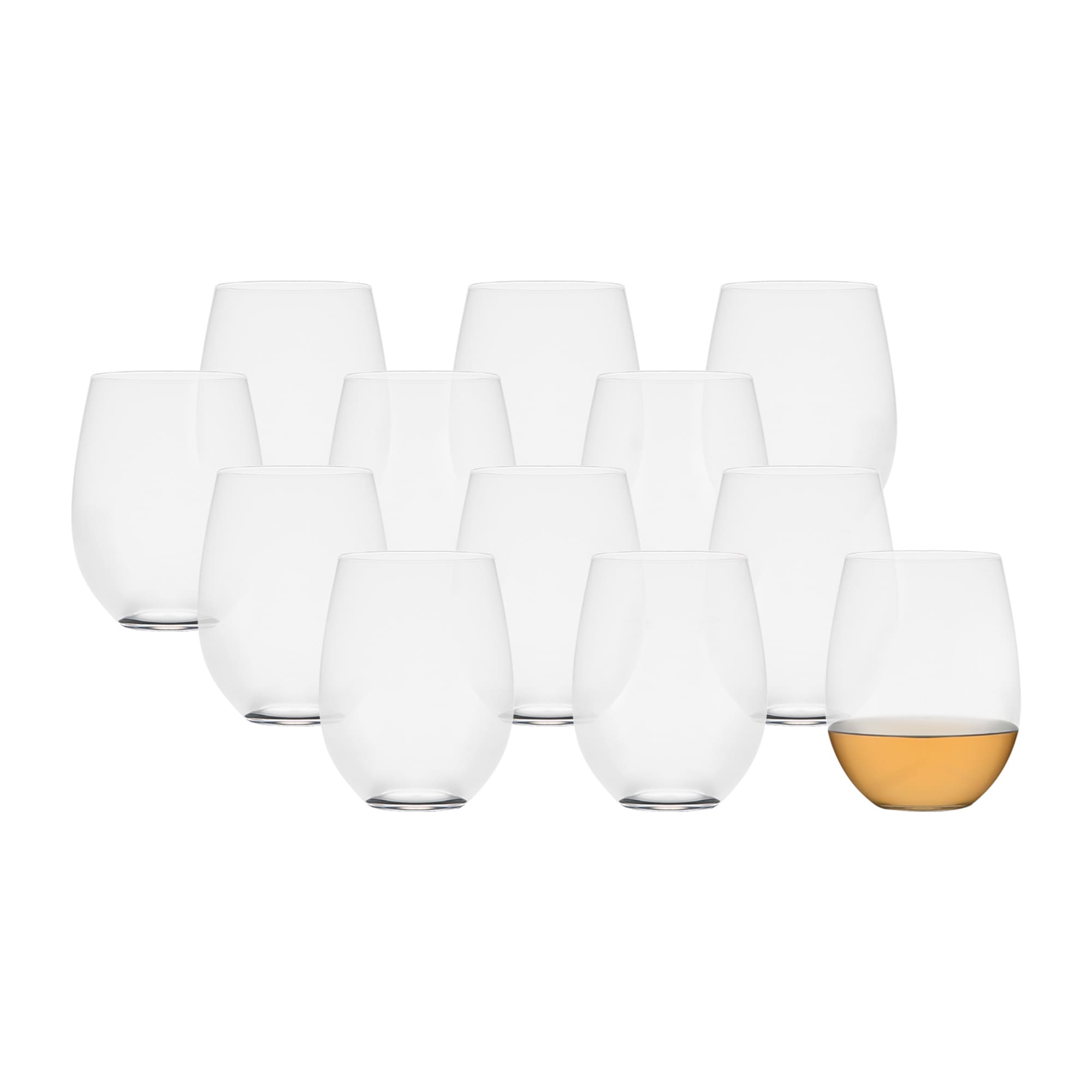 - Set of twelve stemless glasses with a timeless curved shape