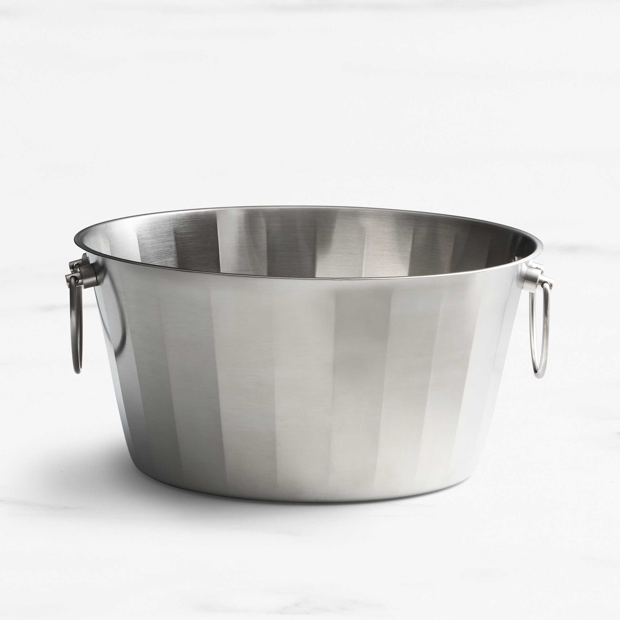 Built for big gatherings, this generous champagne tub has plenty of space for bottles and ice, holding up to seven bottles at a time with high sides to help keep everything in place. The sturdy ring handles make it easy to carry even when full, while the matte satin finish and sleek vertical facet detailing give it a modern, polished look. Made from durable stainless steel, it's a versatile piece that works just as well for entertaining as it does for other household uses.Key Features: