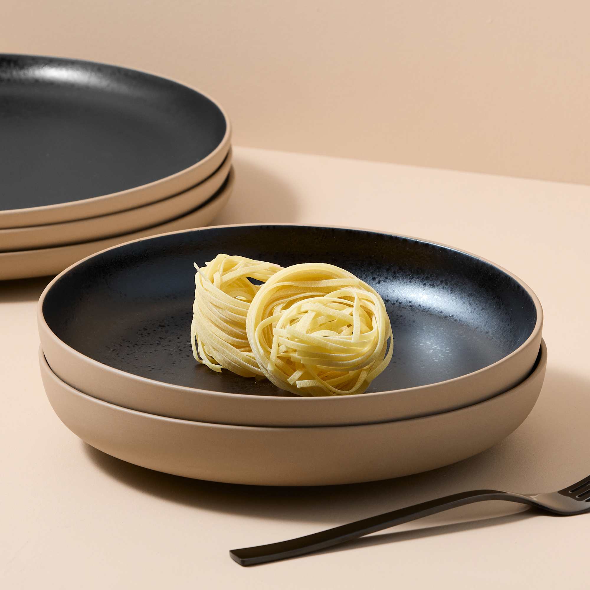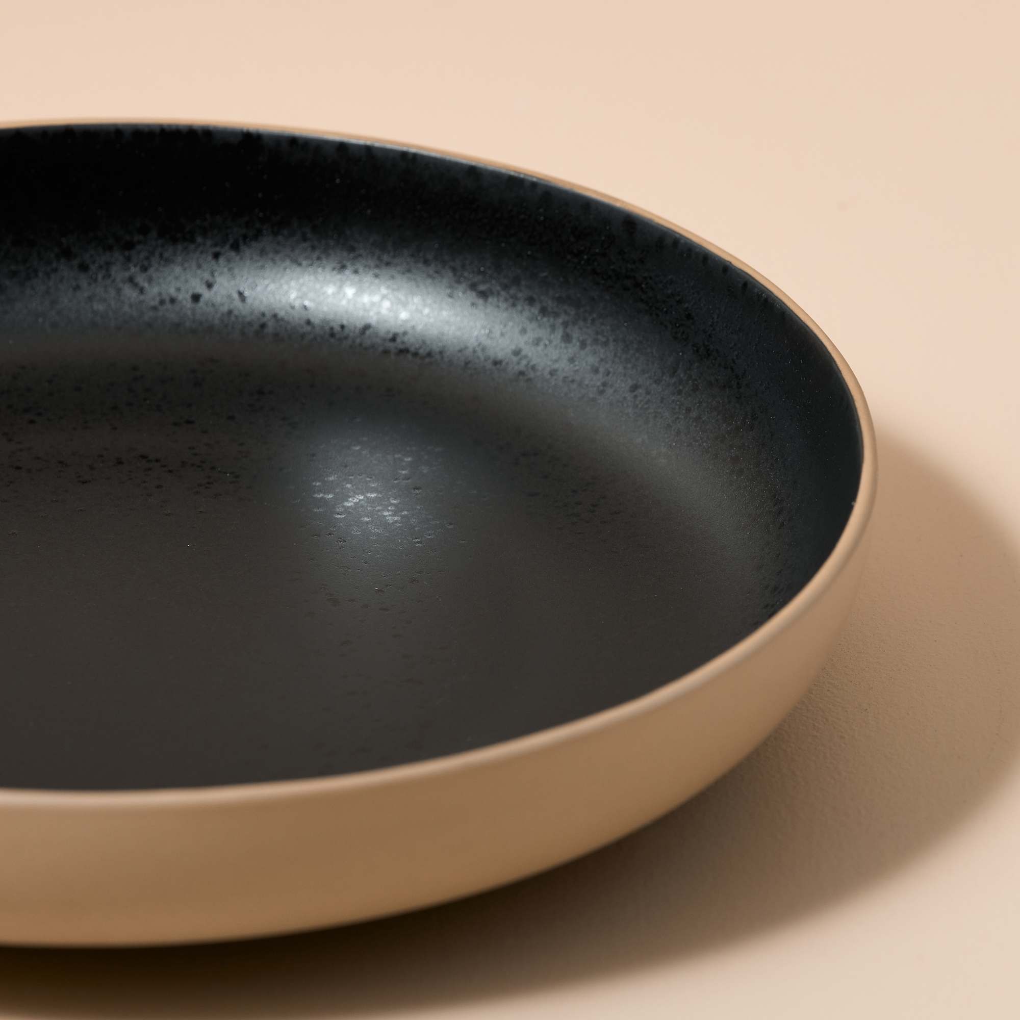 Salisbury & Co Luca is beautifully handcrafted from heat retentive stoneware, featuring a matte black glazed interior and a natural clay exterior for a striking contrast. Each piece is uniquely shaped, offering one-of-a-kind designs that add an organic, artisanal charm to your table setting. Mix and match this 22cm pasta bowl with other pieces from the range for a coordinated look.