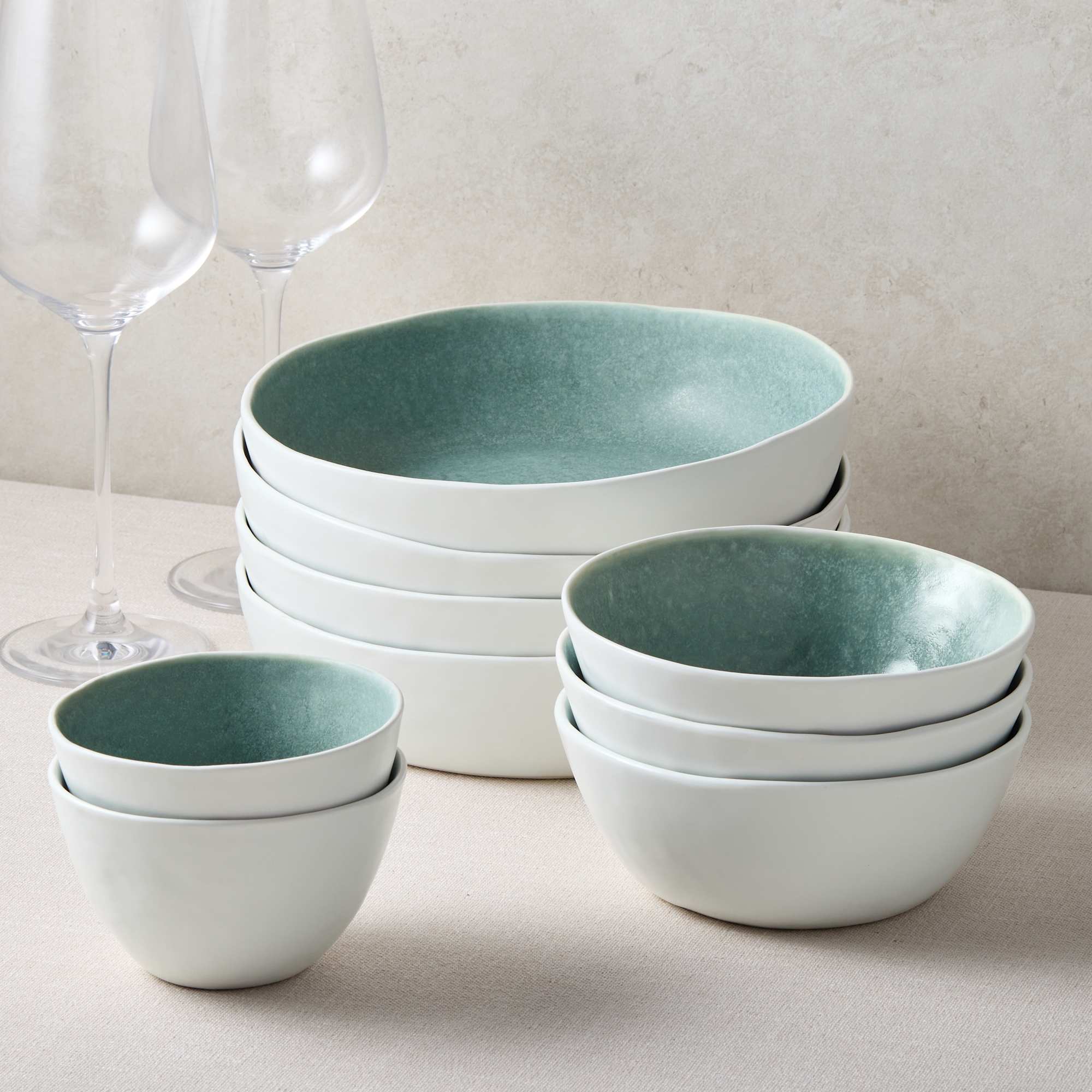 • Glazed with a soft seafoam colour