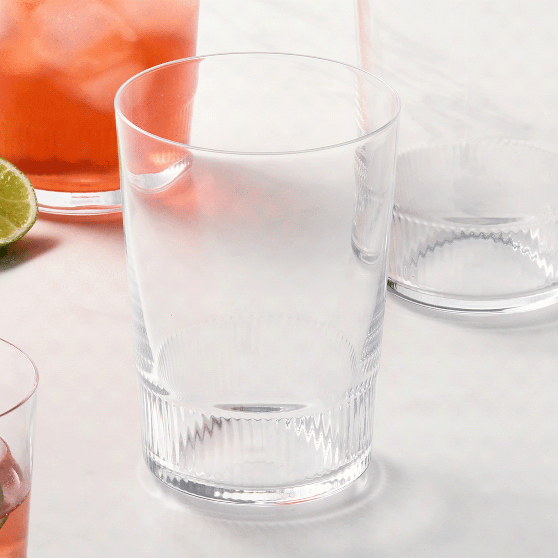 Handmade with a curved modern shape, the Salisbury & Co Quench Linea Tumbler Set is handmade and features a cylindrical, modern shape, with a textured base. Designed for everyday use, it feels great in hand and suits any occasion from morning juice to evening cocktails. Simple, elegant and dishwasher safe, they're perfect for everyday use.