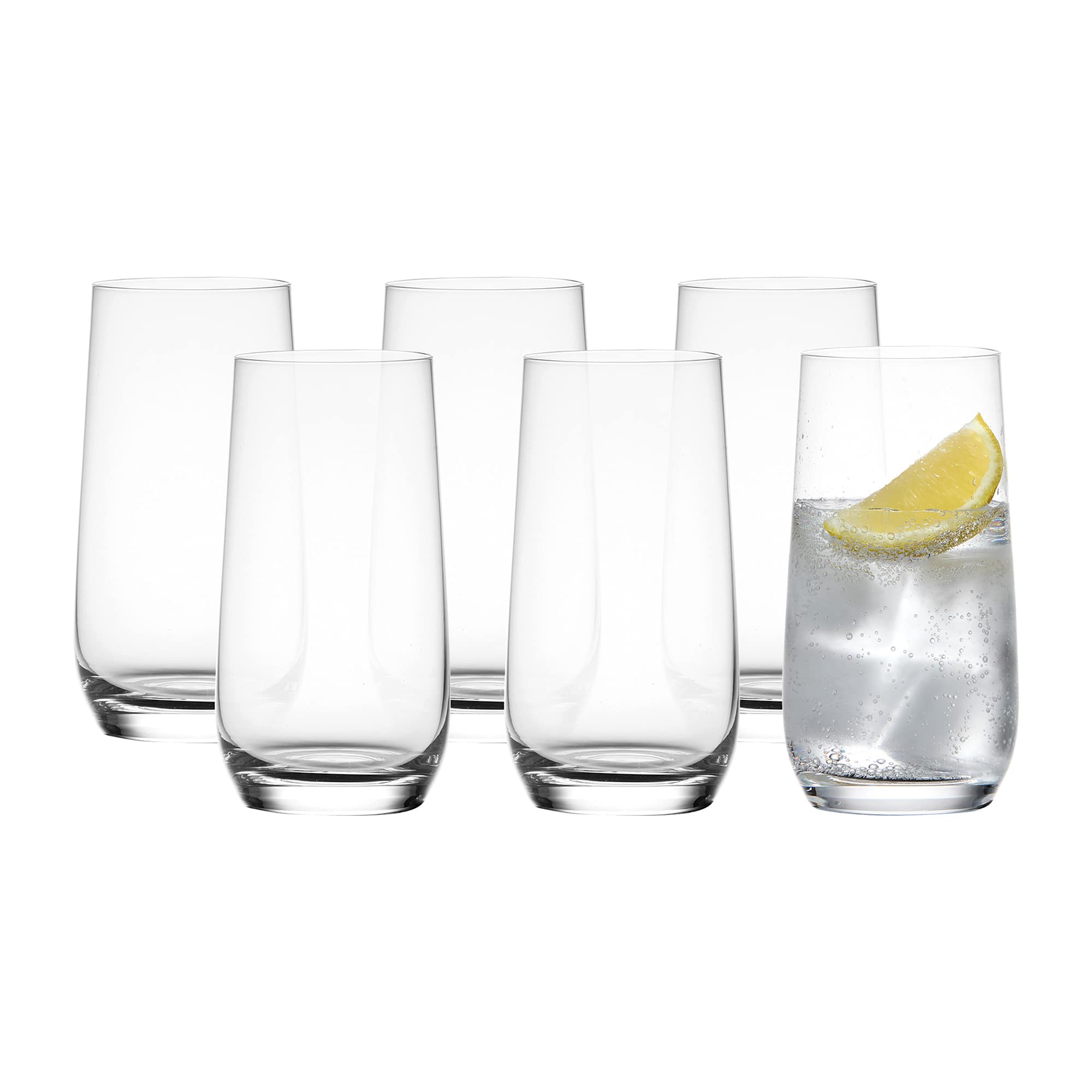 - Set of six elegant 470mL highball glasses