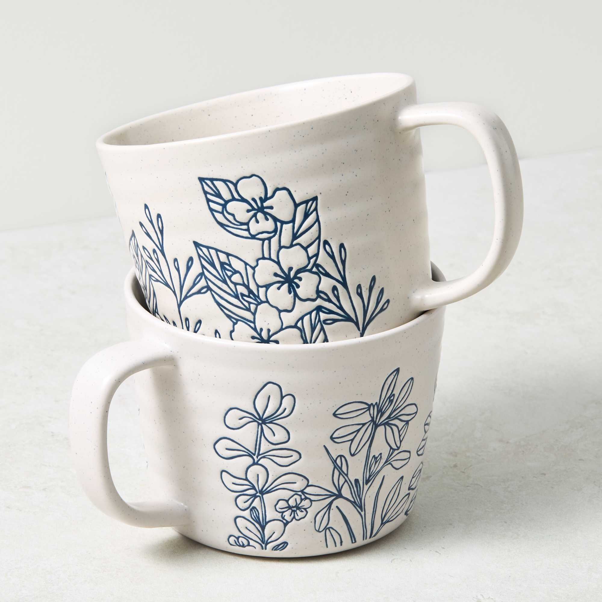 Add a floral touch to your daily brew with the Salisbury & Co Wildflower Mug Set. Made from durable, heat retentive stoneware, each mug features a mix of wildflower prints and a hand dipped speckle glaze for a unique, artisan look. Perfect for everyday use with added charm.